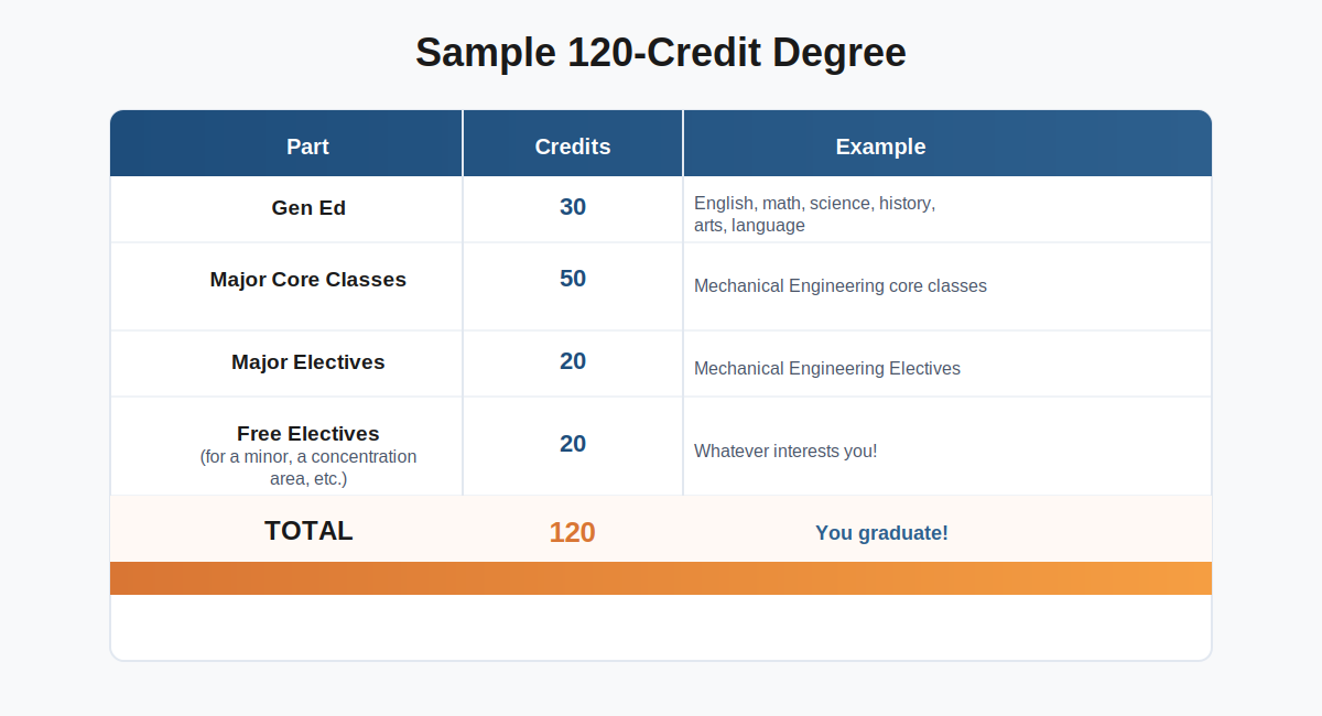 Your roughly 125-135 credits break into three parts.