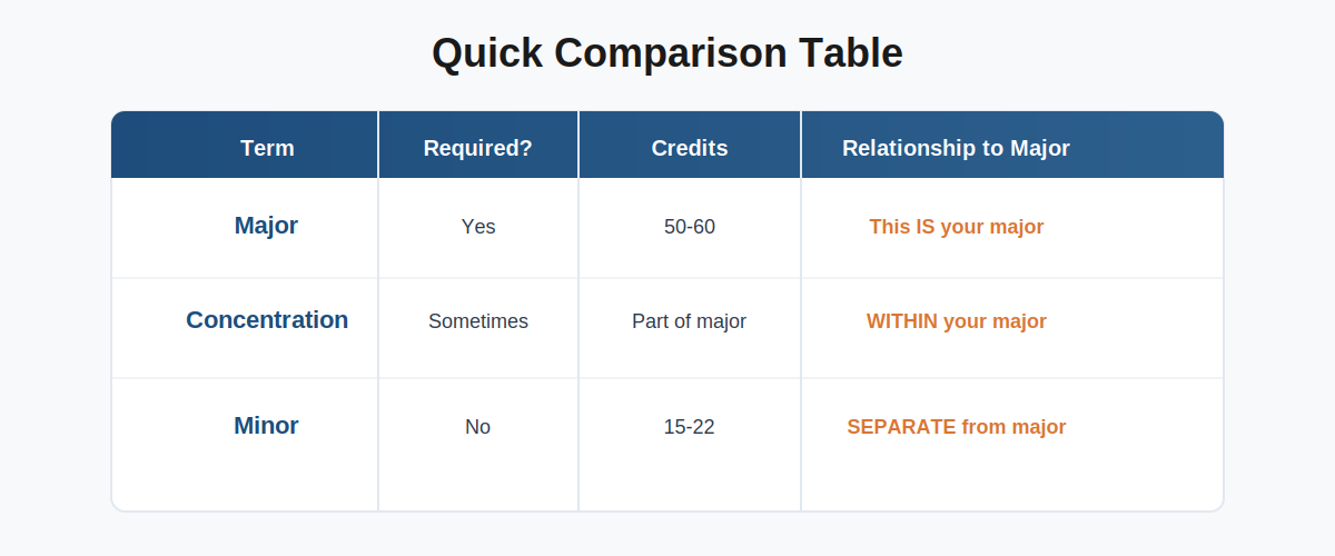 Majors vs. Minors vs. Concentrations